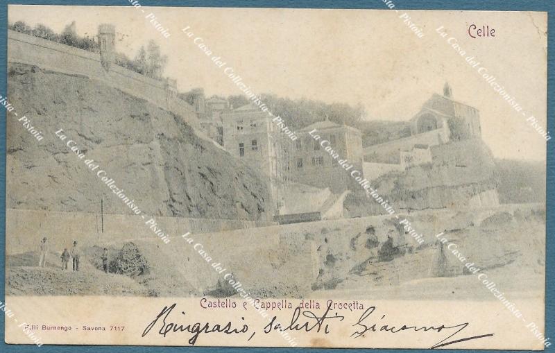 CELLE LIGURE, Savona. Castello e Cappella della Crocetta. Cartolina viaggiata nel 1901. (Rif.F5745)