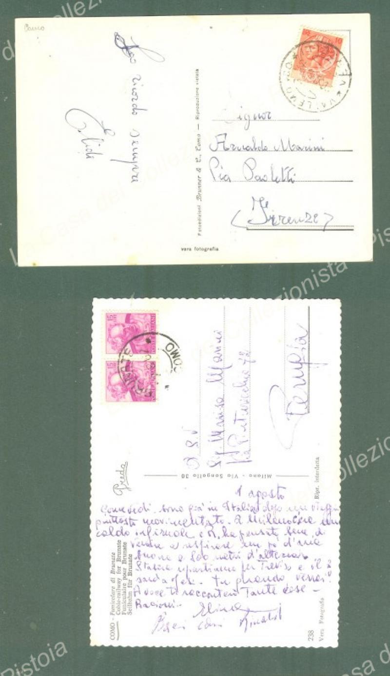 COMO. Funicolare. 2 cartoline d'epoca viaggiate nel 1957 e 1962. (Rif.E4126)