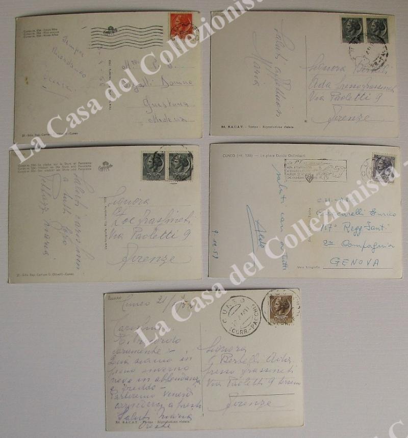 CUNEO. 5 cartoline d'epoca formato grande viaggiate nel 1954-1959. (Rif.E4020)