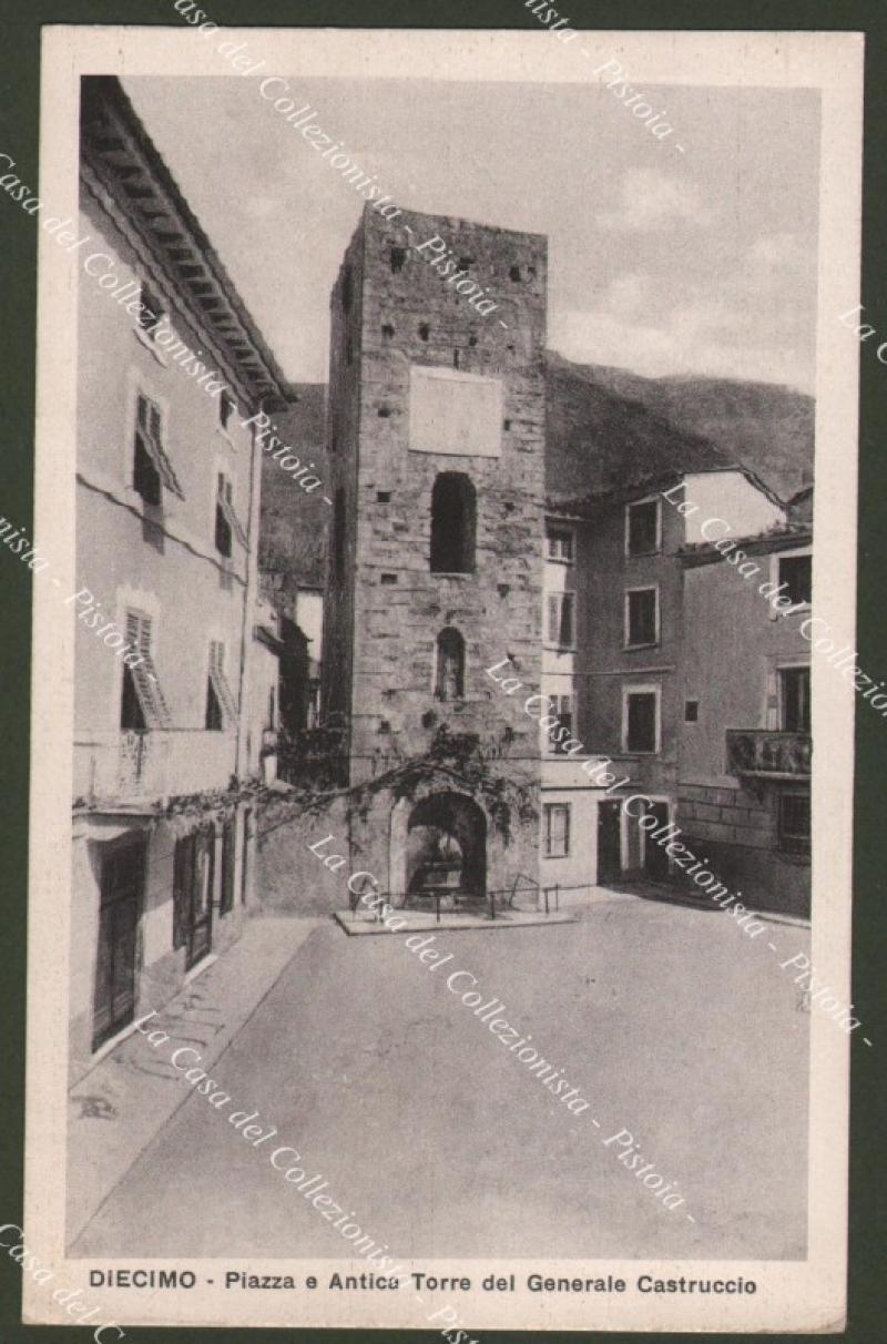 DIECIMO, Lucca. Piazza e antico torre del generale Castruccio. Cartolina non viaggiata, circa 1938. Ottima conservazione. (Rif.D7576)