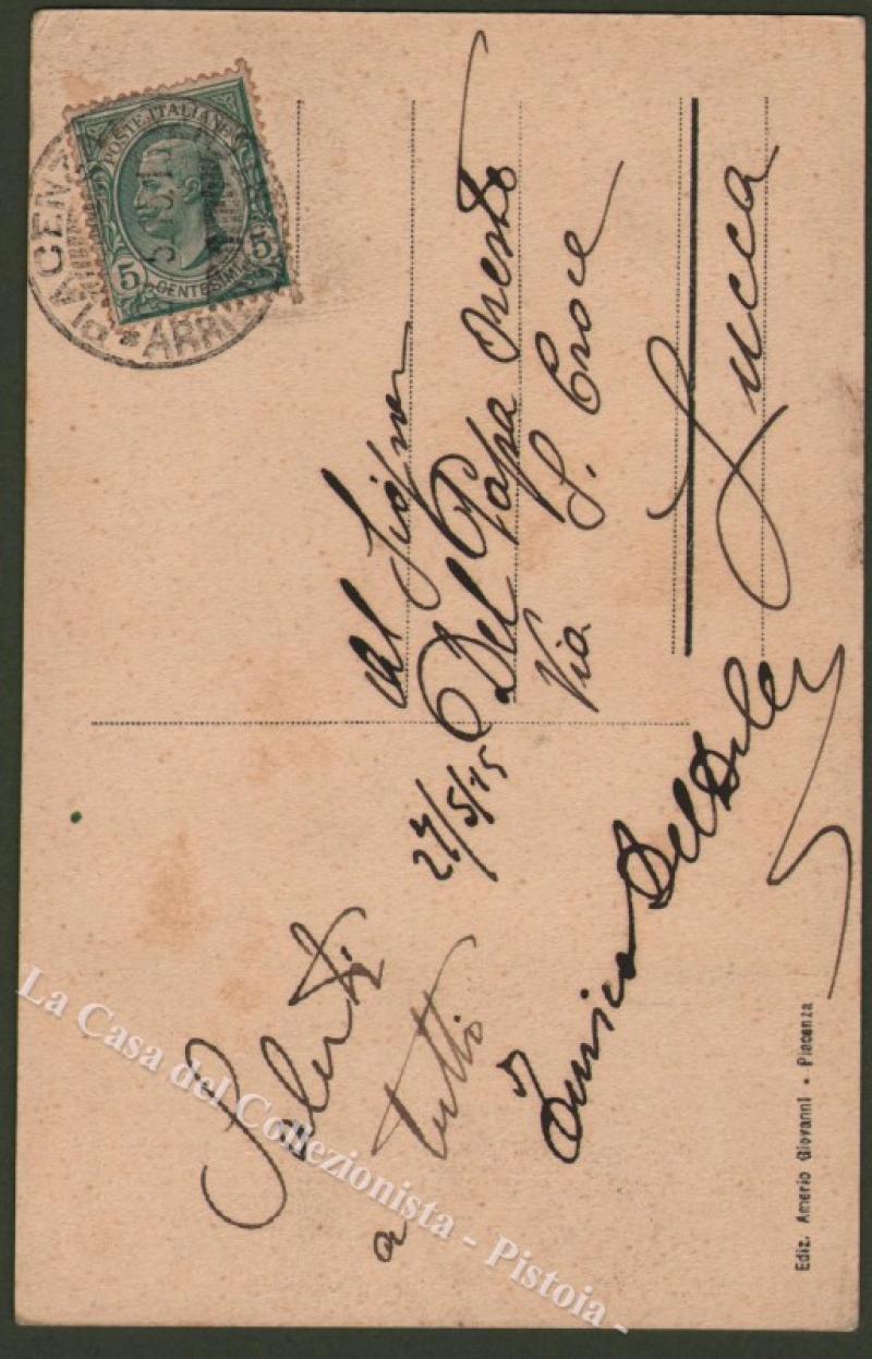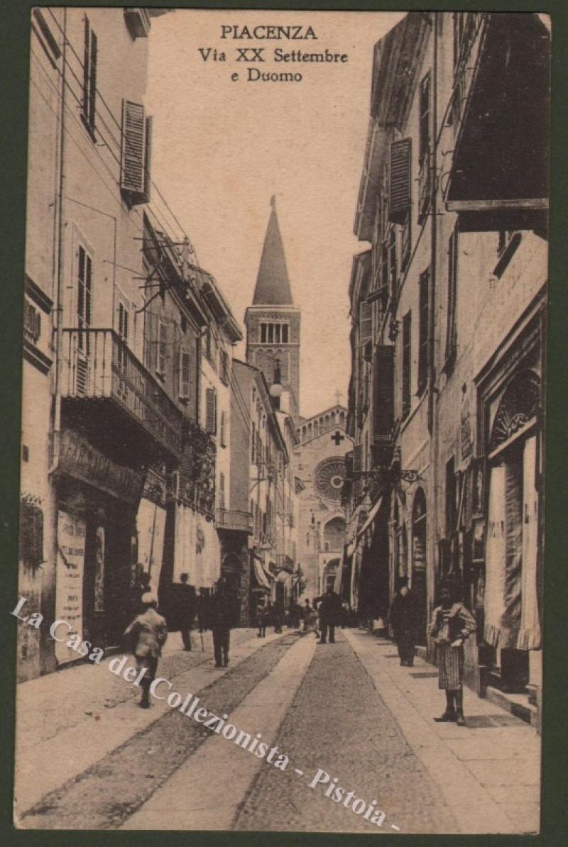 Emilia. PIACENZA. Via XX Settembre e Duomo. Cartolina d'epoca viaggiata nel 1915. Ottima conservazione. (Rif.D2462)