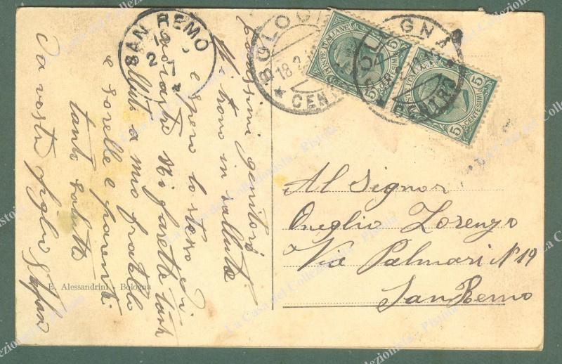 Emilia Romagna. BOLOGNA. Monumento Galvani e calcografia Salvardi. Cartolina d'epoca viaggiata nel 1910. (Rif.D6494)