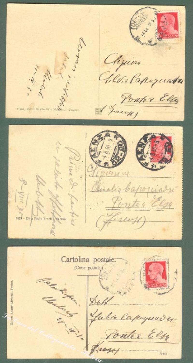 Emilia Romagna. FAENZA, Ravenna. Tre cartoline d'epoca viaggiate nel 1930. Ottima conservazione. (Rif.D3902)