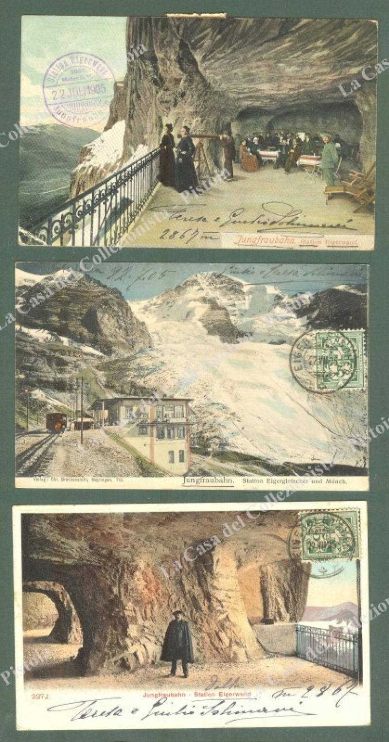 Estero. IUNGFRABHAN, Svizzera. 3 cartolina d'epoca viaggiata nel 1905.