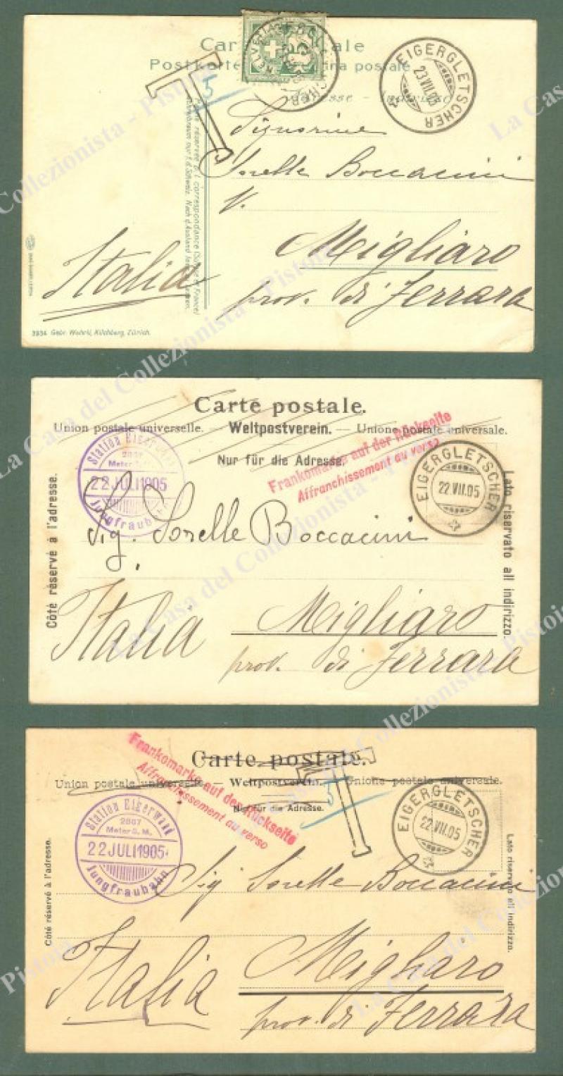 Estero. IUNGFRABHAN, Svizzera. 3 cartolina d'epoca viaggiata nel 1905. (Rif.E0666)