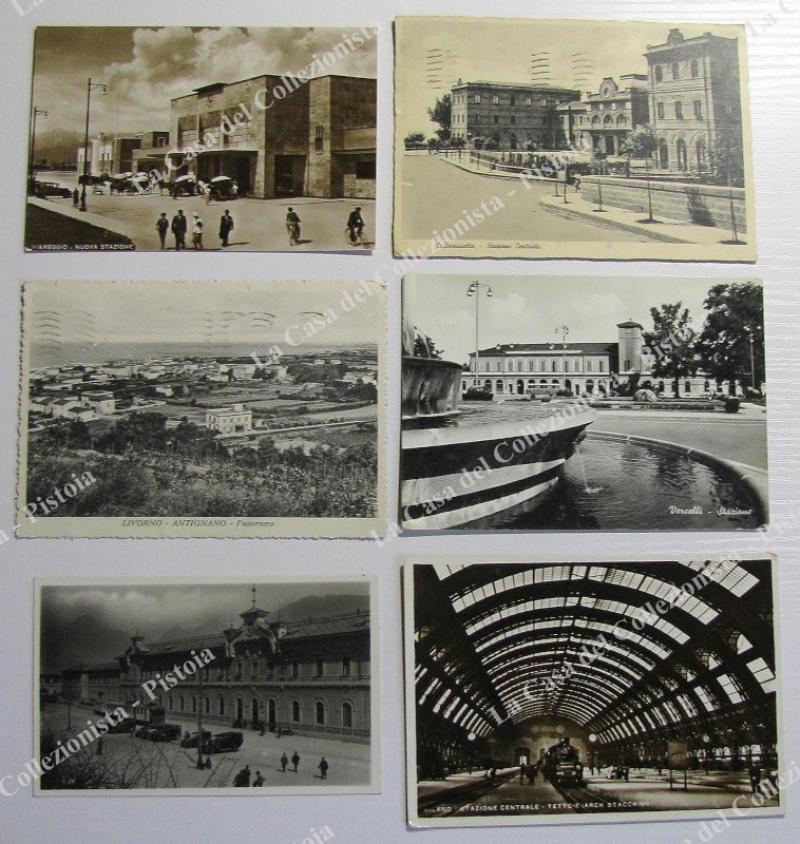 FERROVIA-STAZIONI. 6 cartoline di cui 4 viaggiate 1955-1956. Domodossola, Viareggio, Caltanissetta, Vercelli, Antignano, Milano. Buona conservazione. (Rif.E3723)