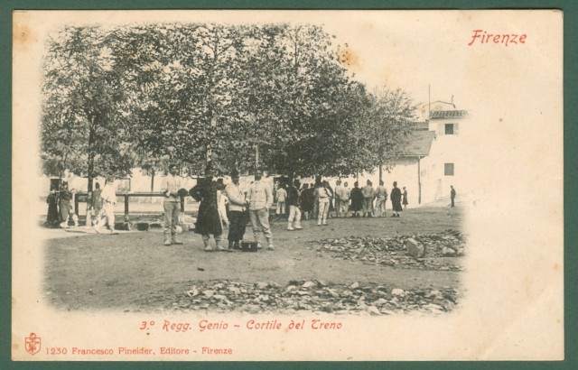 FIRENZE. 3'° Regg. Genio. Cortile del treno. Cartolina d'epoca non viaggiata, inizio '900.