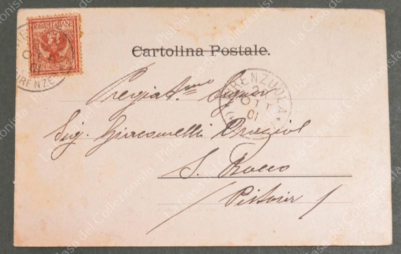 FIRENZUOLA. Piazza Agnolo da Firenzuola. Cartolina d'epoca formato piccolo, viaggiata nel 1901. (Rif.F7700)