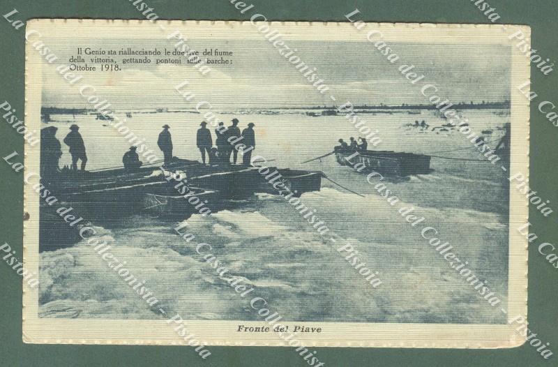 FIUME PIAVE 1918. Il Genio getta pontoni tra le due rive. Cartolina d'epoca non viaggiata. (Rif.E4683)