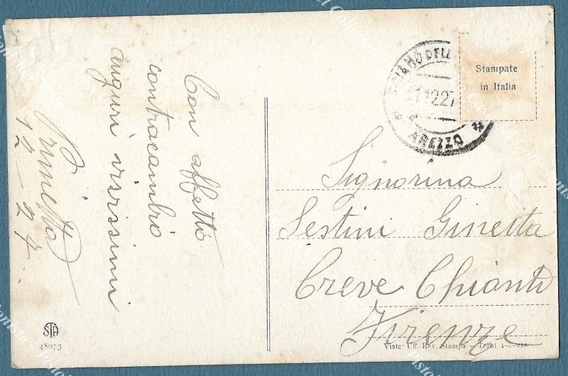 FOIANO DELLA CHIANA, Arezzo. Viale Umberto I. Cartolina viaggiata nel 1927. Francobollo asportato. (Rif.F7871)