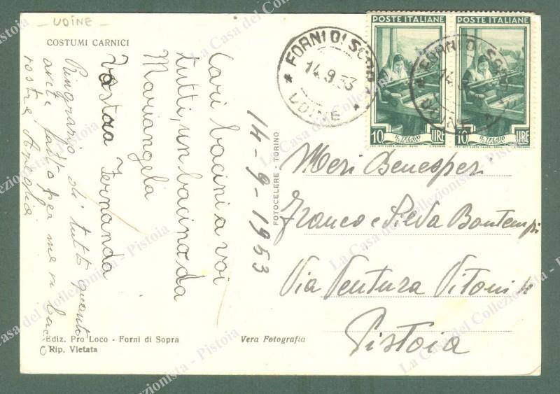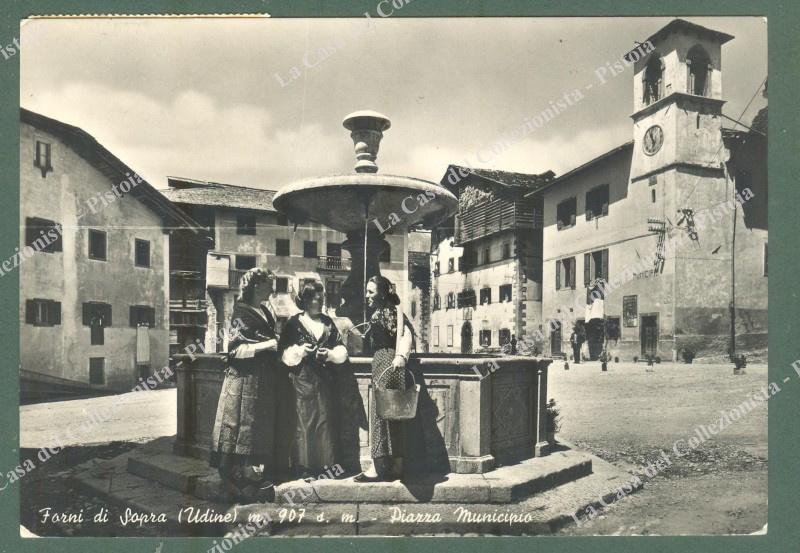 FORNI DI SOPRA, Udine. Piazza municipio. Cartolina d'epoca formato grande viaggiata nel 1953. (Rif.E4059)