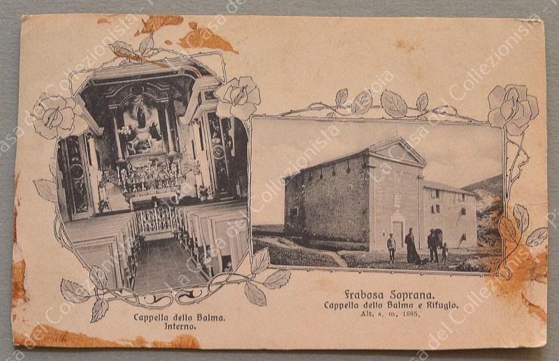 FRABOSA SOPRANA, Cuneo. Rifugio Cappella della Balma. Cartolina d'epoca formato piccolo, viaggiata nel 1920. Macchiata. (Rif.F6348)