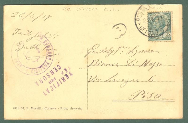 FRIULI, CORMONS. Saluti da. Cartolina d'epoca viaggiata nel 1917 in posta miitare. Buona conservazione. (Rif.D5182)