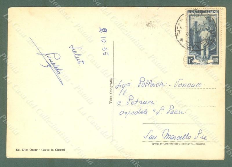 GREVE IN CHIANTI. Saluti da. Cartolina d'epoca formato grande, viaggiata nel 1955. Lievi imperfezioni. (Rif.E5564)