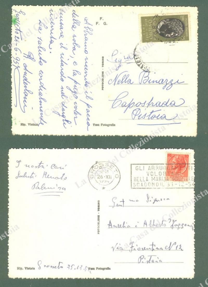 GROSSETO. 2 cartoline d'epoca viaggiate nel 1954