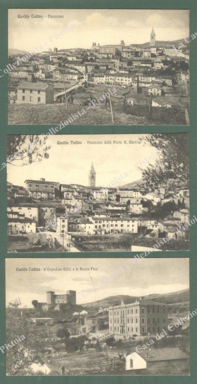 GUALDO TADINO, Perugia. 3 cartoline d'epoca, con panorami diversi, non viaggiate, circa 1920.
