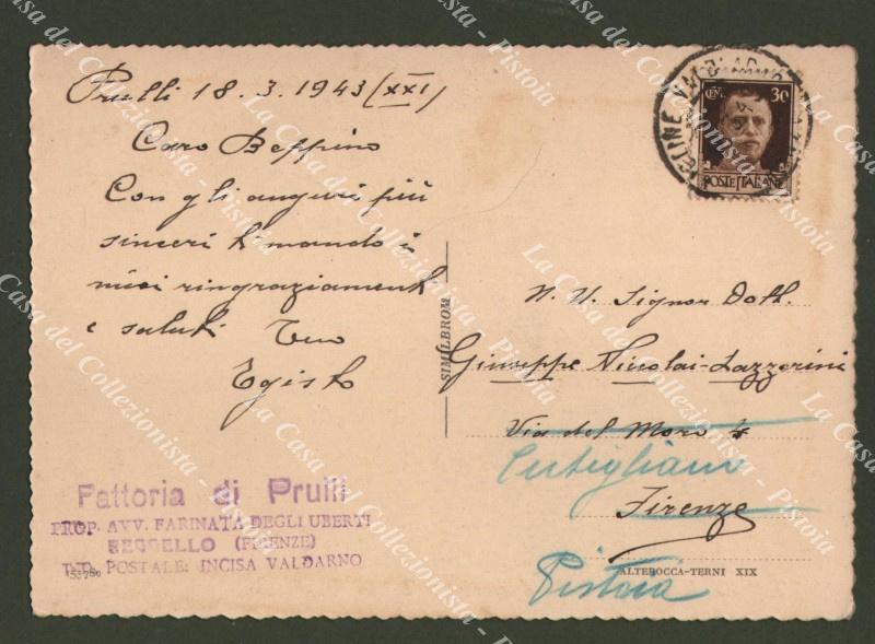 INCISA VAL D'ARNO, Firenze. Fattoria di Prulli. Cartolina d'epoca formato grande, viaggiata nel 1943. (Rif.F1538)