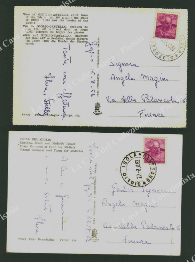 ISOLA DEL GIGLIO, Grosseto. 2 cartoline d'epoca viaggiate 1962/63