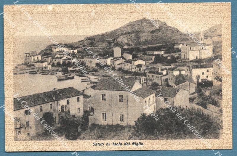 ISOLA DEL GIGLIO, Livorno. Saluti da. Cartolina d'epoca non viaggiata, circa 1920. Lievi ossidazioni. (Rif.F5184)