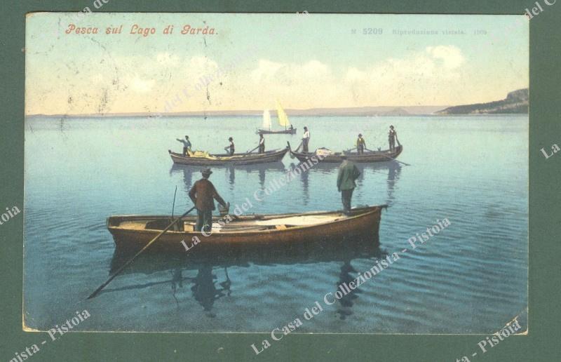 LAGO DI GARDA. Scena di pesca. Pieghetta ad un angolo. (Rif.E0849)