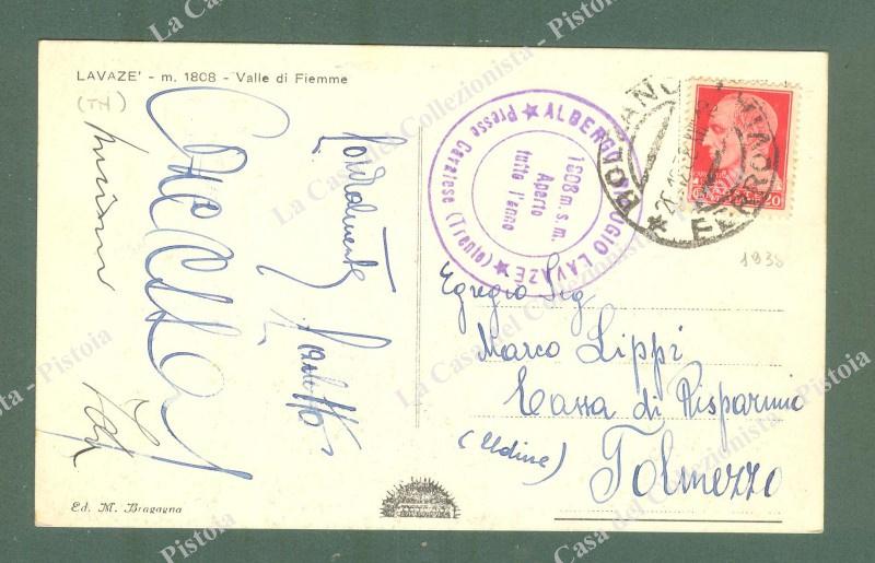 LAVAZE', Trento. Albergo rifugio. Cartolina d'epoca viaggiata nel 1938
