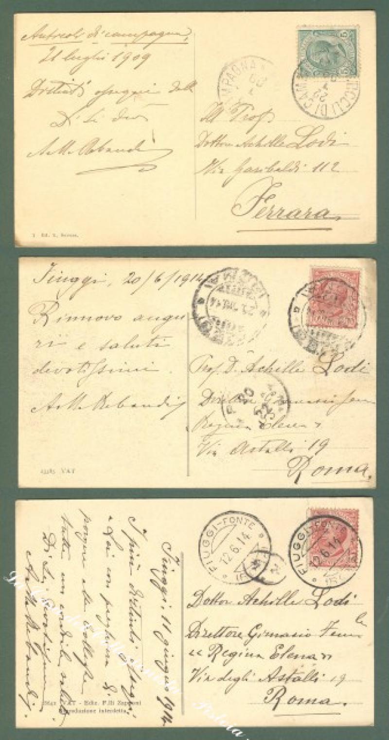 Lazio. FIUGGI, Roma. Tre cartoline d'epoca viaggiate tra il 1909 e il 1914. Ottima conservazione. (Rif.D997)