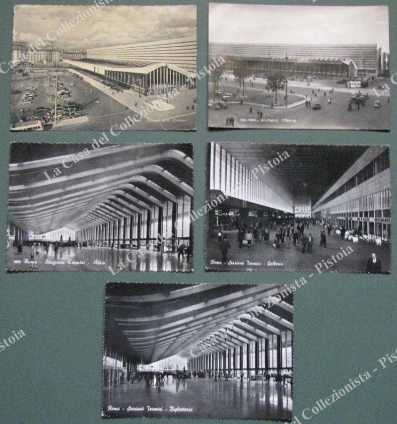 Lazio. ROMA. Stazione Termini. 5 cartoline d'epoca, formato grande, viaggiate tra il 1951-1960.