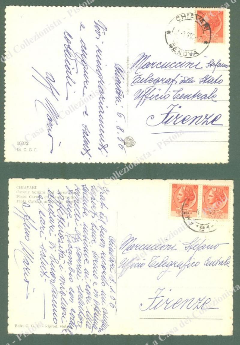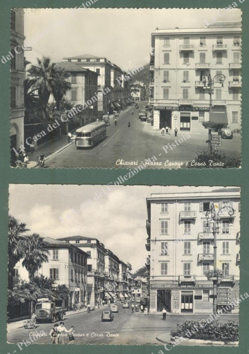 Liguria. CHIAVARI, Genova. 2 cartoline d'epoca formato grande, viaggiate nel 1956