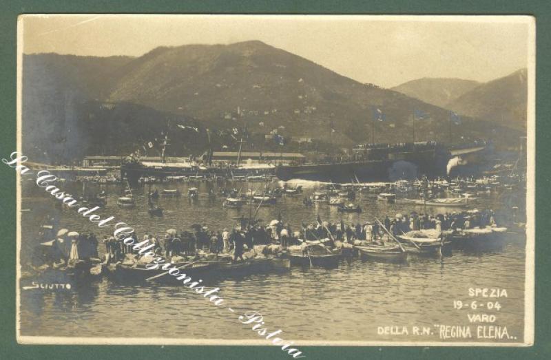 Liguria. LA SPEZIA. Varo della R. Nave Elena del 19.6.1904. Cartolina d'epoca fotografica.
