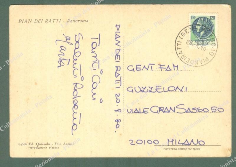 Liguria. PIAN DEI RATTI, Genova. Cartolina d'epoca viaggiata nel 1980