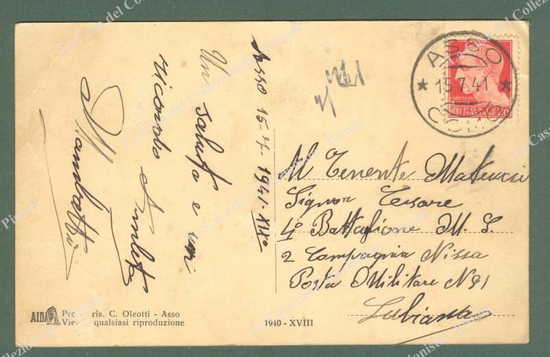 Lombardia. ASSO, Como. Cartolina d'epoca viaggiata nel 1941. (Rif.E0082)