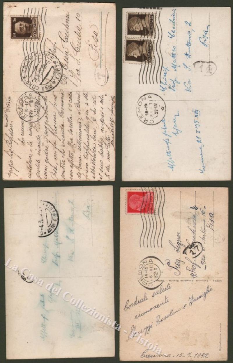 Lombardia. CREMONA. 4 cartoline viaggiate 1932 - 1935.