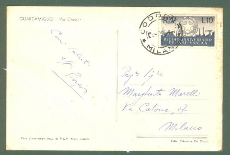 Lombardia. GUARDAMIGLIO, Lodi. Via Cavour. Cartolina d'epoca viaggiata nel 1956.