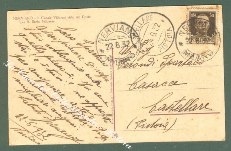 Lombardia. NERVIANO, Milano. Il canale Villoresi visto dal Ponte per S. Ilario Milanese. Cartolina d'epoca viaggiata nel 1932. Ottima conservazione. (Rif.D1277)