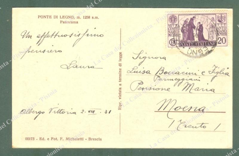 Lombardia. PONTE DI LEGNO, Bergamo. Panorama. Cartolina d'epoca viaggiata nel 1931