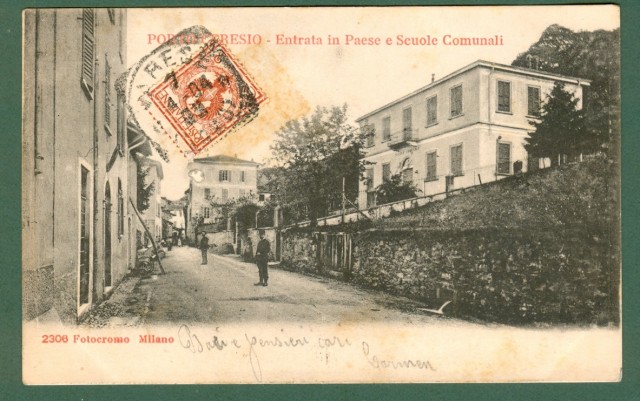 Lombardia. PORTOCERESIO, Varese. Entrata in paese. Cartolina d'epoca viaggiata nel 1904