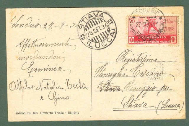 Lombardia. SONDRIO. Panorama. Cartolina d'epoca viaggiata nel 1934.