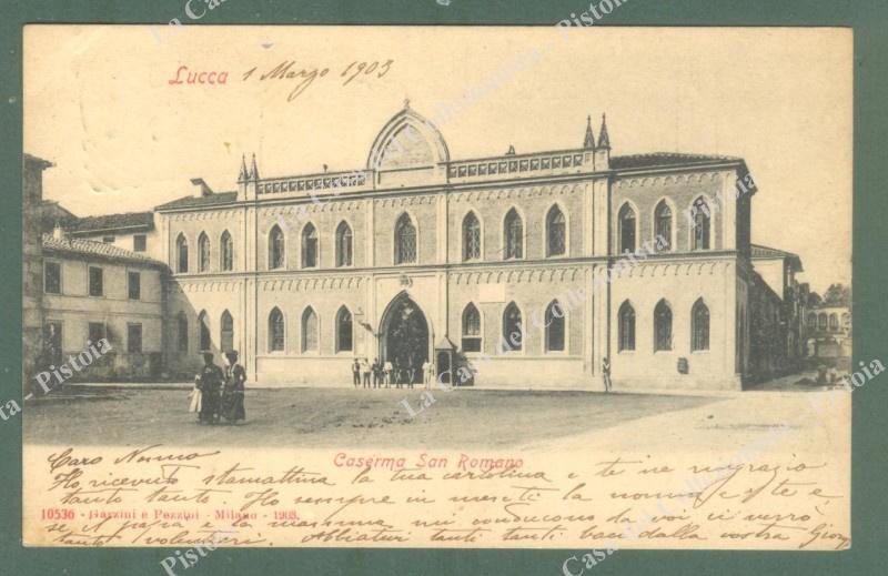 LUCCA. Caserma San Romano. Cartolina d'epoca viaggiata del 1 Marzo 1903. (Rif.E3379)