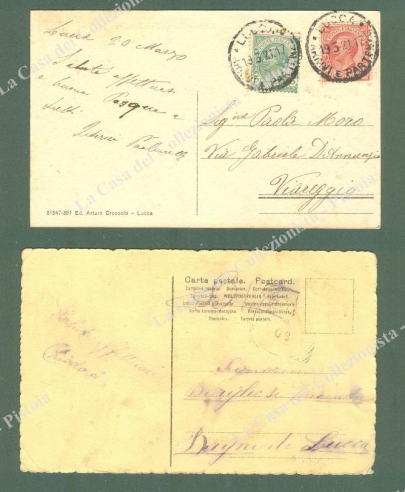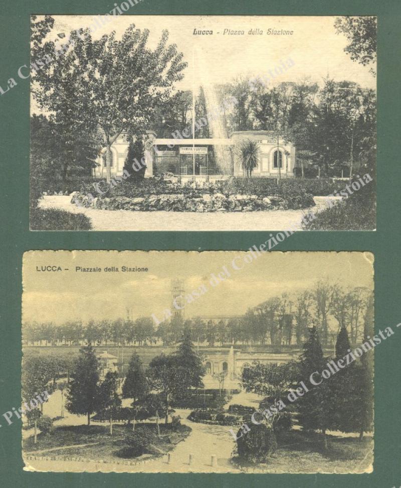 LUCCA. Piazza della stazione della tramvia a vapore. 2 cartoline d'epoca viaggiate