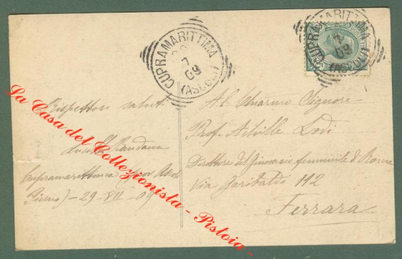 Marche. CUPRA MARITTIMA, Ascoli. Le rupi. Cartolina d'epoca viaggiata nel 1909. Buona conservazione. (Rif.D795)