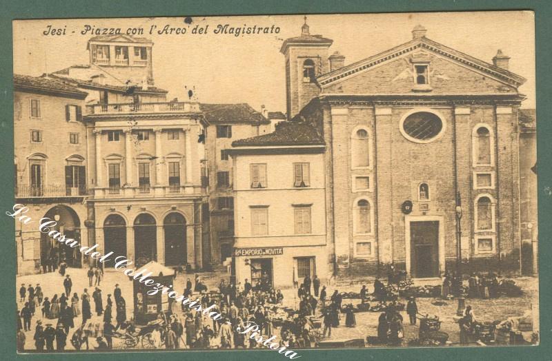 Marche. IESI. Piazza con l'Arco del Magistrato. Cartolina d'epoca viaggiata nel 1916. Ottima conservazione. (Rif.D2605)