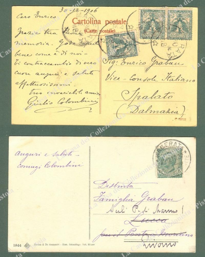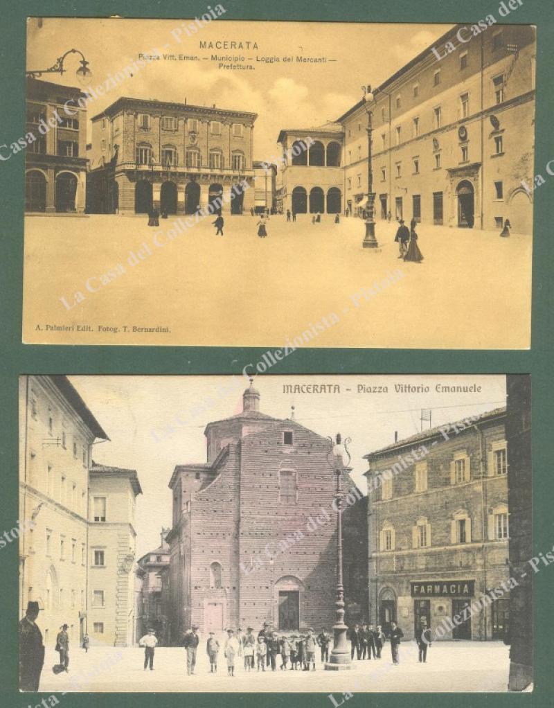 Marche. MACERATA. Piazza V. Emanuele. 2 cartoline d'epoca viaggiate nel 1906 e 1910. Ottima conservazione. (Rif.E0074)