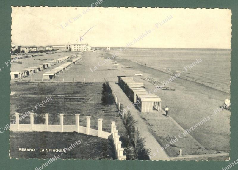 Marche. PESARO. Spiaggia. Cartolina d'epoca viaggiata nel 1955