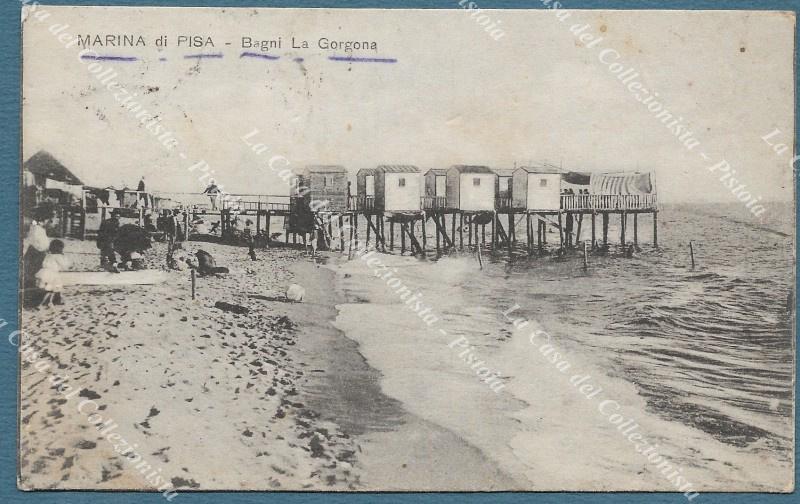 MARINA DI PISA. Bagni La Gorgona. Cartolina d'epoca viaggiata nel 1921. Francobollo asportato. (Rif.F2765)