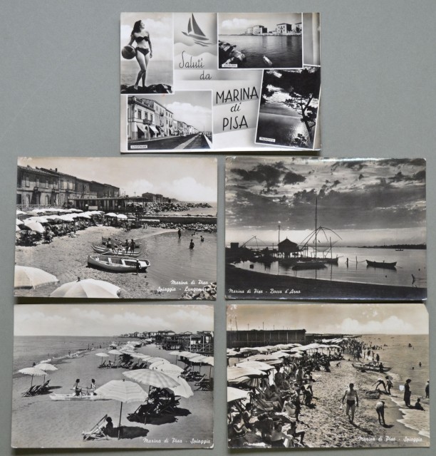 MARINA DI PISA. Pisa. 5 cartoline lucide, viaggiate 1951-1958.