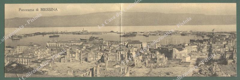 MESSINA. Panorama. Cartolina d'epoca doppia viaggiata nel 1913. (Rif.E2466)