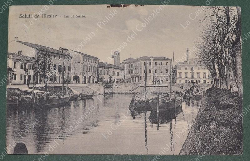 MESTRE, Venezia. Canal Salso. Cartolina d'epoca viaggiata in Posta Militare