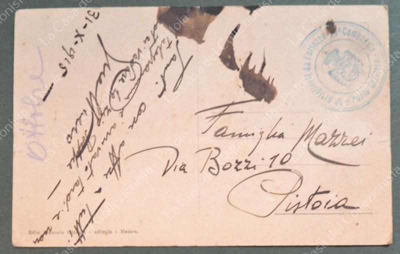 MESTRE, Venezia. Canal Salso. Cartolina d'epoca formato piccolo, viaggiata nel 1915 in Posta Militare. Macchia a retro. (Rif.F7161)