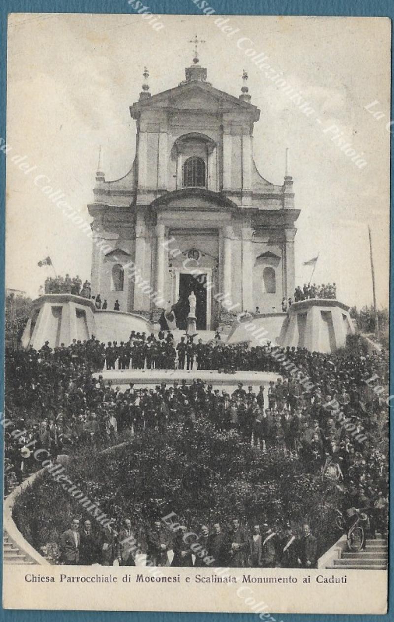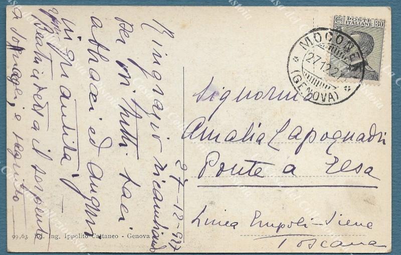 MOCONESI, Genova. Folla e chiesa parrocchiale. Cartolina viaggiata nel 1927. (Rif.F2744)