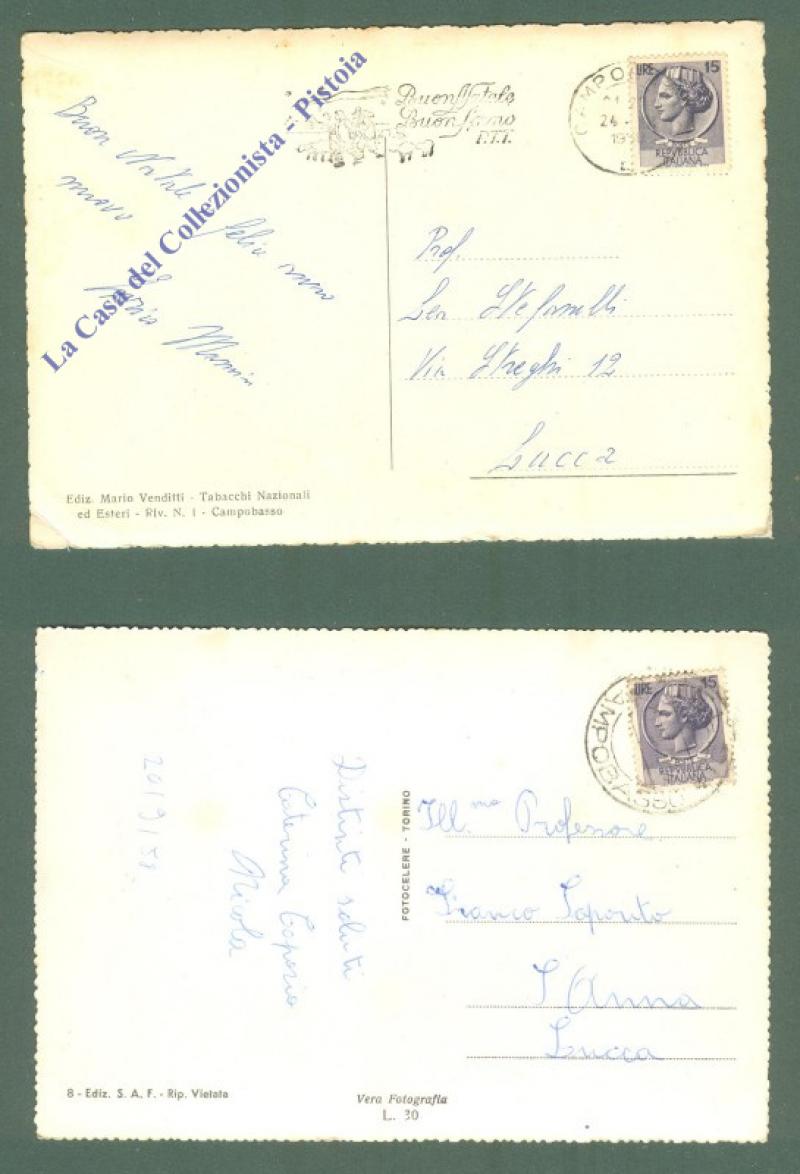 Molise. CAMPOBASSO. 2 cartoline d'epoca viaggiate nel 1958. Una piega d'angolo. (Rif.D5773)